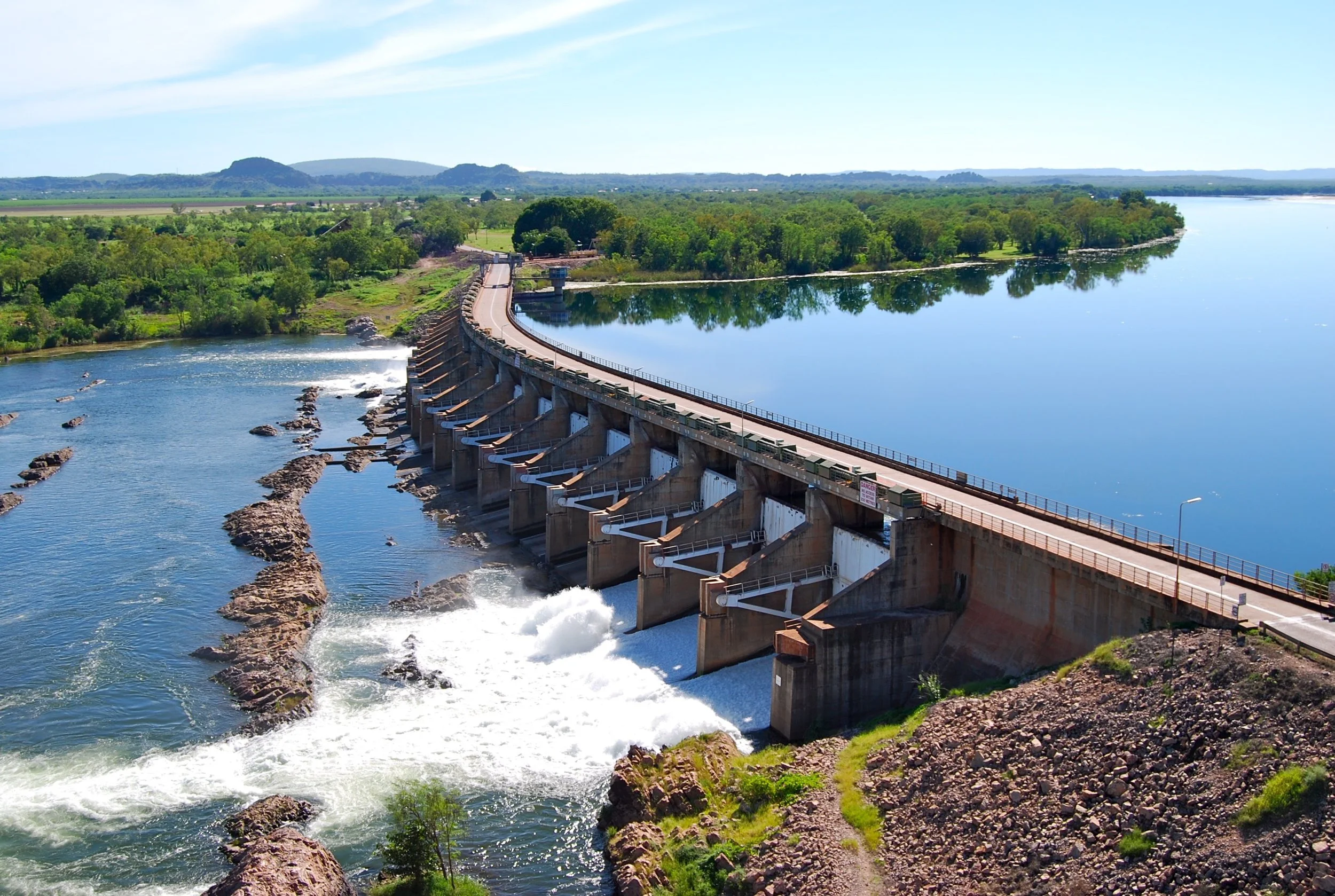 Kununurra’s Diversion Dam, separating the Upper Ord (right) from the Lower Ord (left)